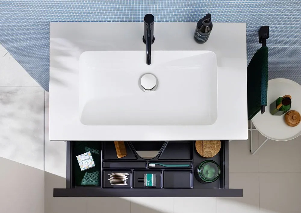 Details wie die fein verarbeiten Laserkanten ohne sichtbare Leimfugen zeigen die gute Verarbeitungsqualität, die auch durch das DGM-Herkunftslabel „Möbel Made in Germany“ unterstrichen wird. Mit der Zertifizierung durch den Blauen Engel ist die Kollektion zudem eine der ganz wenigen Badmöbelserien, die die hohen Anforderungen an Gesundheits- und Umweltverträglichkeit von Deutschlands ältestem und bekanntestem Umweltsiegel erfüllen.